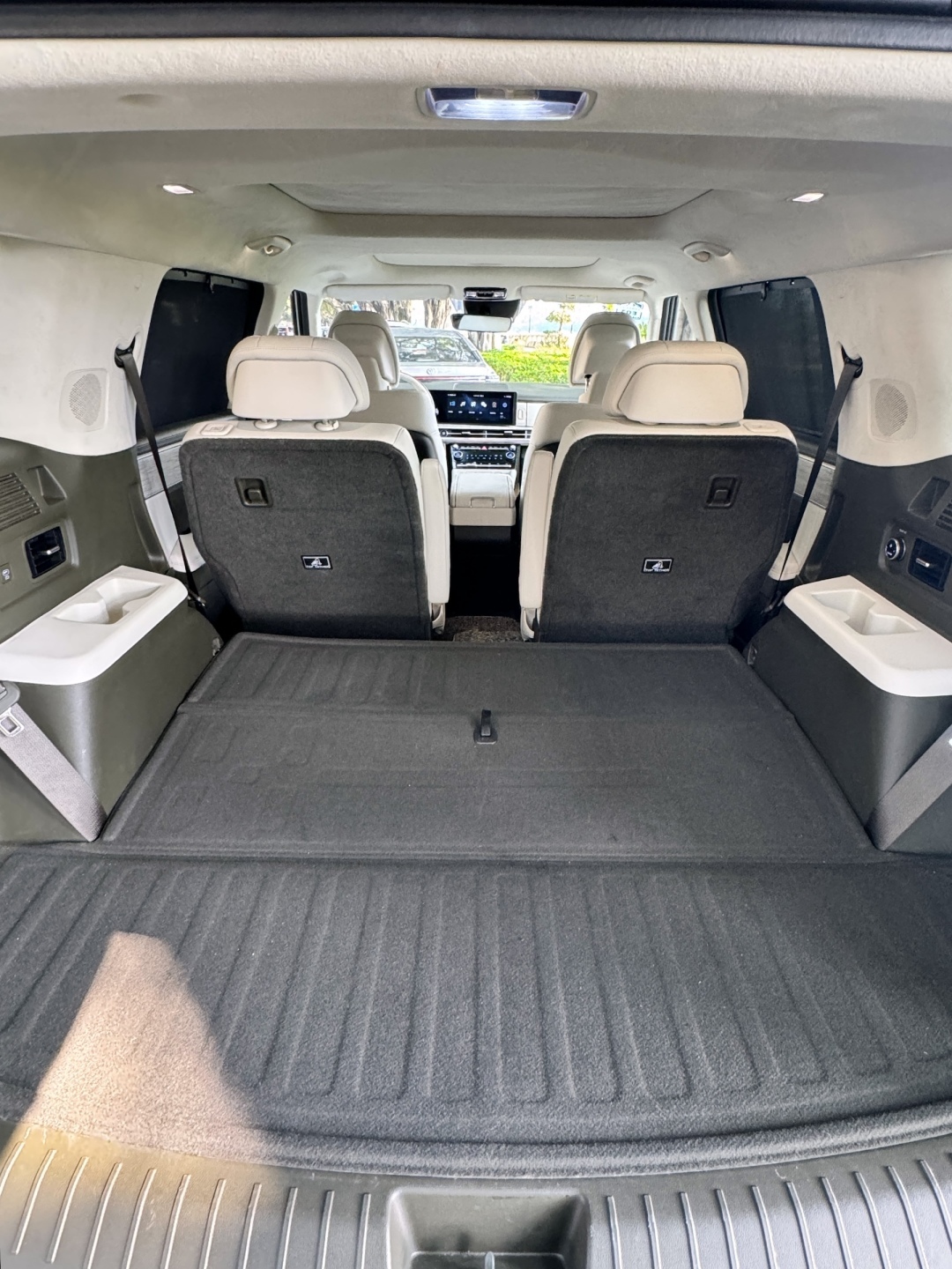 在车天下对第五代胜达的深度试驾体验中,这款适合全家出行的户外轻越野中大型SUV的空间给我们留下深刻印象。北京现代对空间利用率和空间布局也有自己的独到考虑。譬如在第五代胜达上,以露台式设计方向对车辆空间进行升级,实现车内空间最大化,后备厢宽度及高度达同级领先的1275mm*812mm;内部二排实现1075mm的腿部空间、三排实现978mm的头部空间+761mm的腿部空间,达到同级领先,满足日常乘坐空间需求;并配备了多种座椅布局,实现用户全家出游的舒适体验及适应多用途场景;此外,2046L人性化行李箱空间-通过尾门平直造型使空间利用率更高,可实现同级车型中最大的装载空间。在二/三排放平后,整车尾部可以得到一个最大可达2.05m的纵深空间,可容纳3辆山地自行车、4个高尔夫球包、4个波士顿包等。