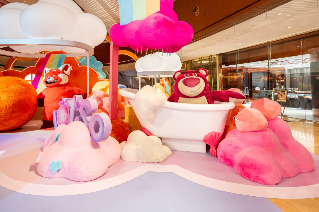 步入M层中庭的梦境起点,在皮克斯主题棉花糖车品“尝”第一口节日甜蜜,循着温暖的香气,偶遇大眼仔与毛怪的“视”觉暴击;从棉花糖滑梯溜下,掉入草莓熊主题的“嗅”觉甜梦浴缸漂流,或是来到“触”动人心的小熊猫美美主题抱抱屋,感受每个角落松软治愈的触感,沉浸游览皮克斯倾注无限灵感的奇妙国度。在互动区域,顾客还有机会与皮克斯明星朋友拍下大头贴,和陪伴自己成长的治愈好友留下珍贵纪念。