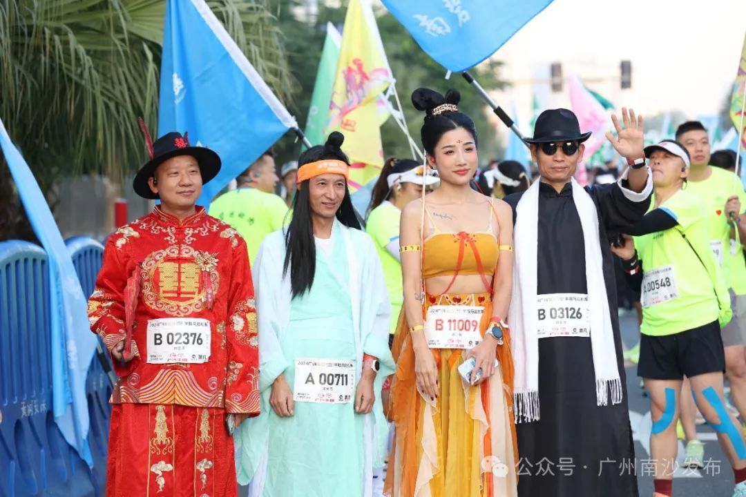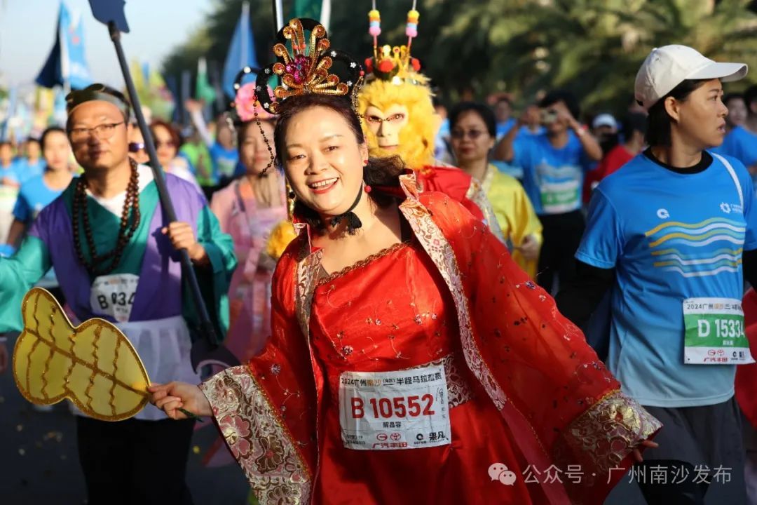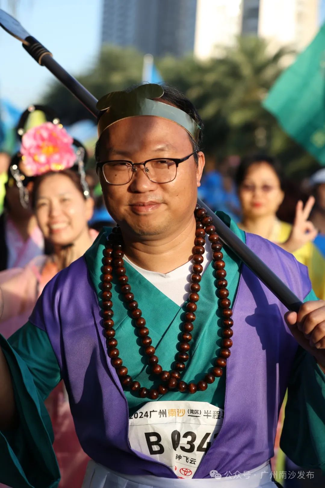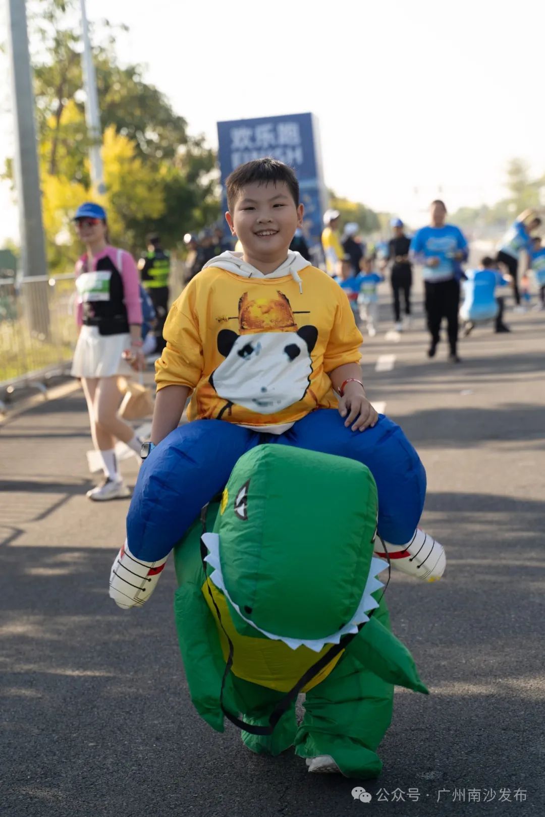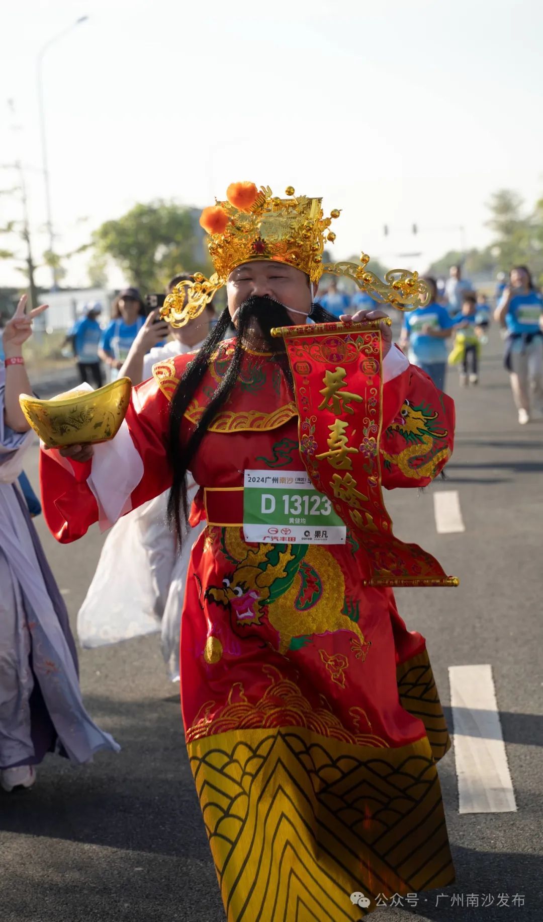 市民黄先生以他别具一格的着装,在欢乐跑赛道上格外引人注目。据黄先生介绍,他已多次参加此类跑步活动,不仅在南沙,还在顺德等地留下过足迹。