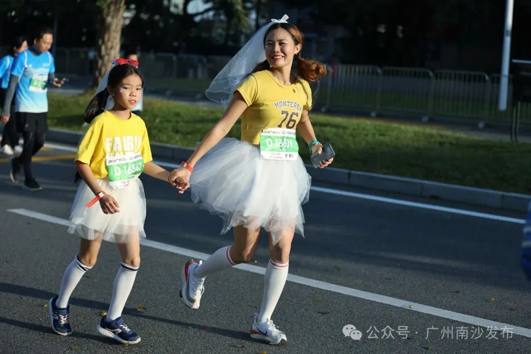 同时,一对穿着亲子装的母女同样成为赛道上的亮点。霍女士表示,她们此前已多次参与类似的欢乐跑活动,而这次带着女儿一同参与南沙首届马拉松,共享运动带来的快乐。