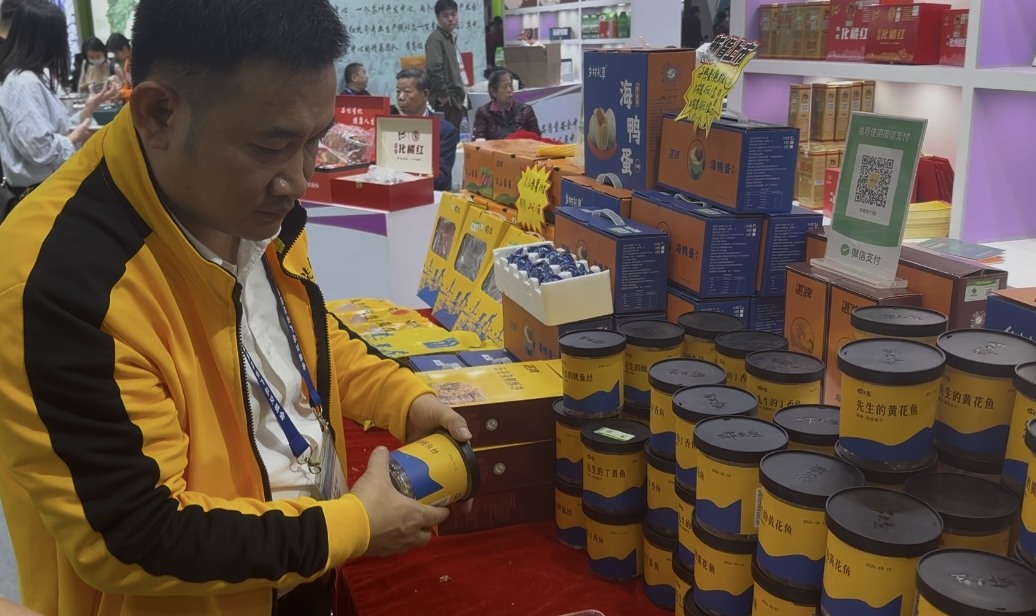 享爱食品有限公司的参展负责人于经理向记者介绍,湛江水产资源丰富,海虾种类多、产量高。湛江虾干作为当地的特色干货,以新鲜捕捞的海虾为原料,经过清洗、水煮、烘烤等精心制作工序而成。每一颗虾干都保留了海虾的鲜美和营养,色泽亮白透红,肉质紧实有嚼劲,成为众多海鲜爱好者的首选。跟往年相比,今年参展收获的订单有所上涨。