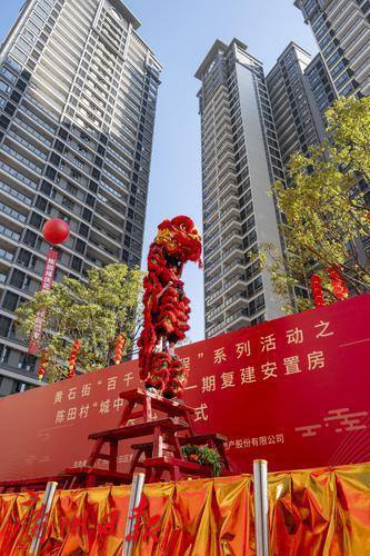12月1日,陈田“城中村改造”复建住宅区首期安置房交付仪式在陈田福庆花园中心广场举行。陈田村村民们齐聚一堂,共同见证并庆祝陈田福庆花园回迁。