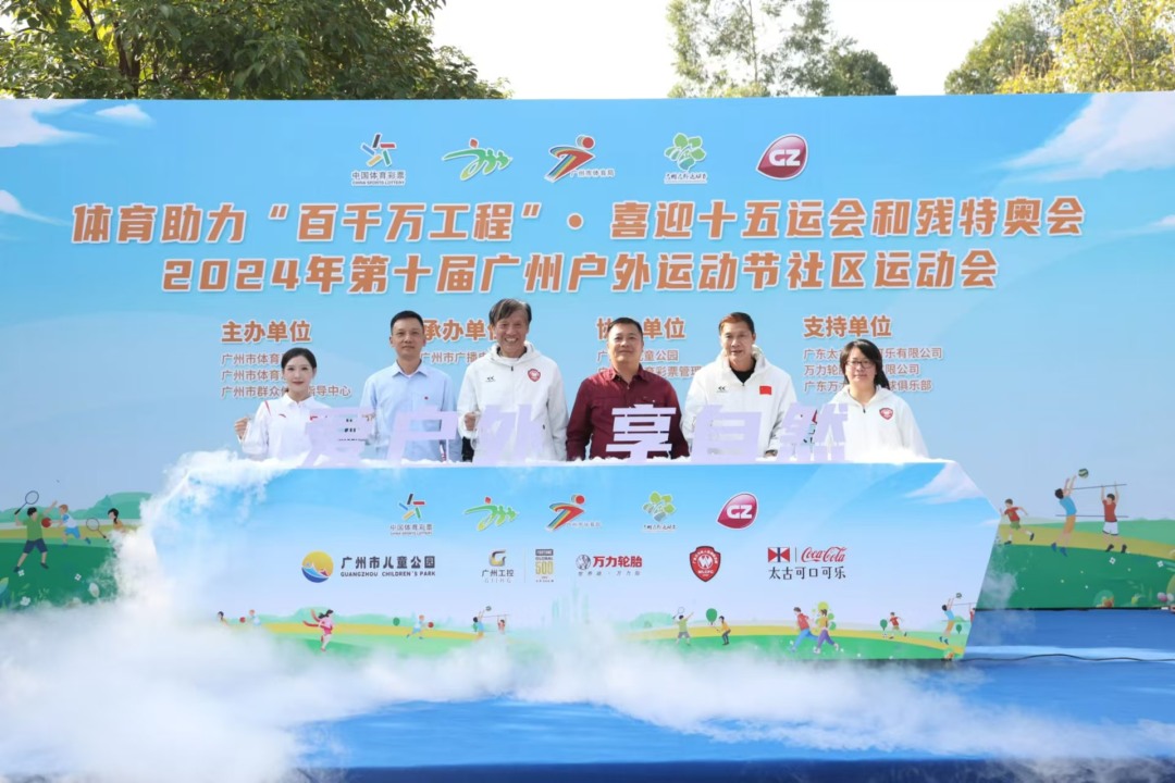 2024年广州市第十届户外运动节社区运动会在儿童公园进行了启动仪式,现场设置了多个足球游戏环节,并邀请了巴西青训教练表演花式足球。