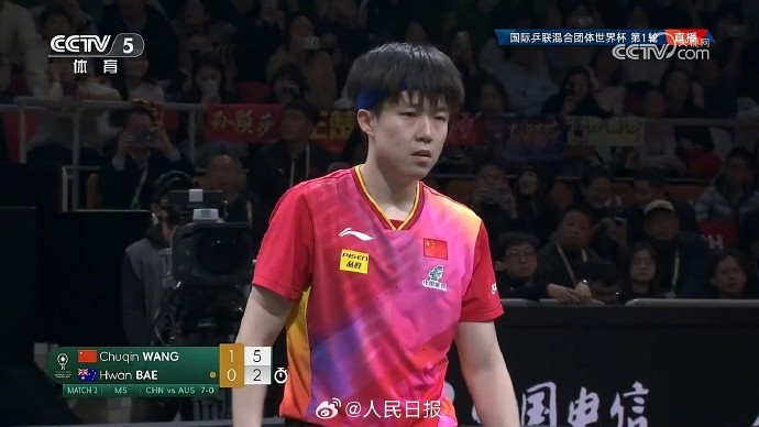 王楚钦以2-0战胜裴焕