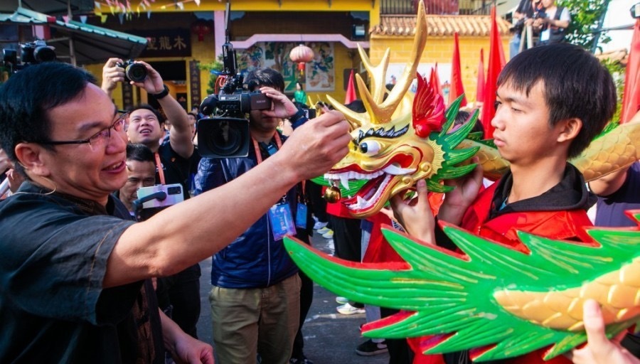 值得关注的是,今年祈福巡游全新升级。巡游活动将10个镇街的龙舟文化元素巧妙融合,形成一条“文化巨龙”。同时,10米顺德大旗、新潮元素如“飘色”、街舞团队扮演的大头佛等,将传统与现代、潮流与民俗完美碰撞,为观众带来一场视觉盛宴。