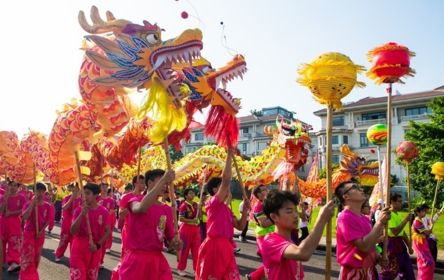 巡游以“拜龙母”“龙眼点睛”等民俗仪式为核心,凝练“行龙运,接龙福”的寓意,让市民游客近距离感受民俗活动的独特魅力。例如,人龙舞为国家级非物质文化遗产;龙眼点睛习俗为省级非物质文化遗产;龙潭龙母诞、黄连龙虱游艺为市级非物质文化遗产。