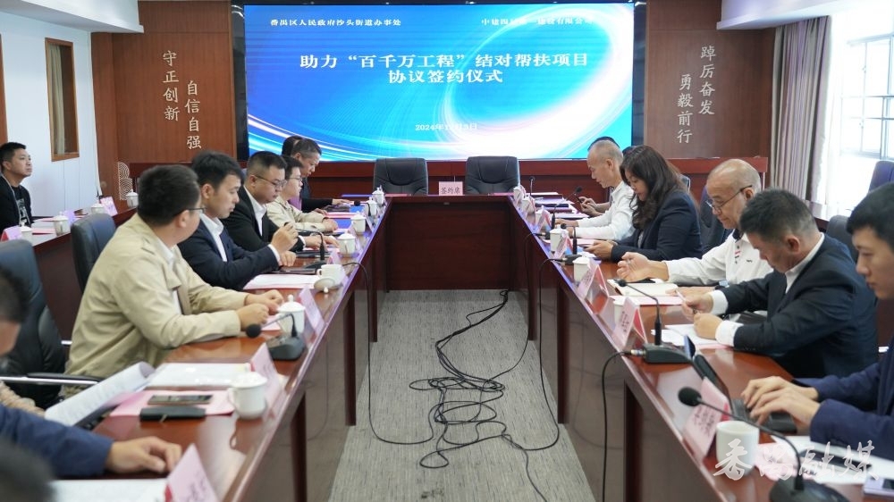 12月3日,沙头街道办事处与中建四局第一建设有限公司举行结对帮扶项目协议签约仪式,双方将携手并进,共同推进基础设施建设、服务提升以及困难群众帮扶等民生工程,为“百千万工程”的深入实施注入新的活力与支撑。
