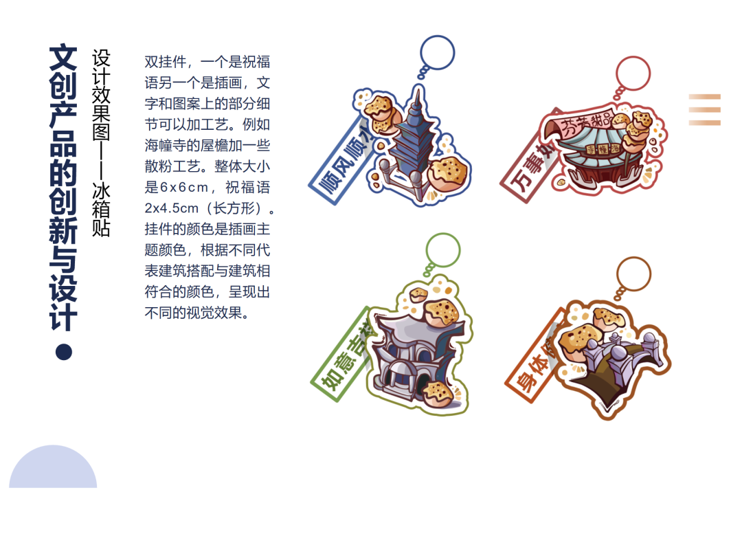 “通过把海幢街的标志性建筑——海幢寺、李福林公馆、芬芳甜品店设计成Q版形象,改变过去大家对这些建筑,甚至是街道城区的沉闷的形象,另外我还加入芬芳甜品的特色小吃——糖不甩,传达了一种文化跨界和创新的精神,把海幢街玩乐、吃喝的元素都融入在我的设计中。我希望大家能通过我的作品对海幢产生更浓厚的兴趣,多来海幢探历史、享美食。听说获奖作品将可能由街道正式量产,我想这是对我作品最大的肯定,感谢街道、区人社局以及市教研院为我们这些中职院校学生提供了这样一个优秀的实践、展示的平台”获得文创赛道一等奖的布同学说道。