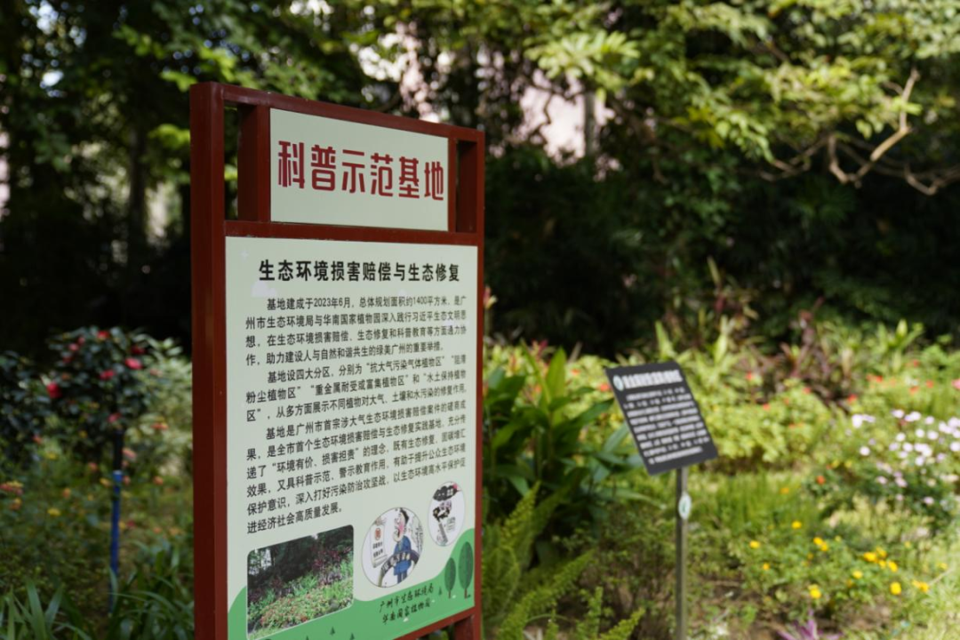 11月11日,当事人购买马缨丹等一批具有净化空气、改善空气质量的绿植种子,种植在华南国家植物园内的生态环境损害赔偿与生态修复科普示范基地。该科普示范基地于2023年6月建成并对公众开放,总体规划面积约1400平方米,围绕生态修复、绿色种植的理念设有“抗大气污染植物区”“抗粉尘植物区”“重金属耐受或富集植物区”和“水土保持植物区”四大分区,从多方面展示不同植物对修复大气、土壤和水污染的效果。自建成以来,天河区、白云区先后已有3宗生态环境损害赔偿案在科普示范基地投入赔偿费用约9万元用于异地替代修复。科普示范基地植物以组团式方式布置,形成色彩丰富、高低错落、疏密有致的景观效果,既有生态修复、固碳增汇效果,又具展览示范、警示教育作用,为全市生态环境违法案件提供了损害赔偿、补偿或修复的空间。