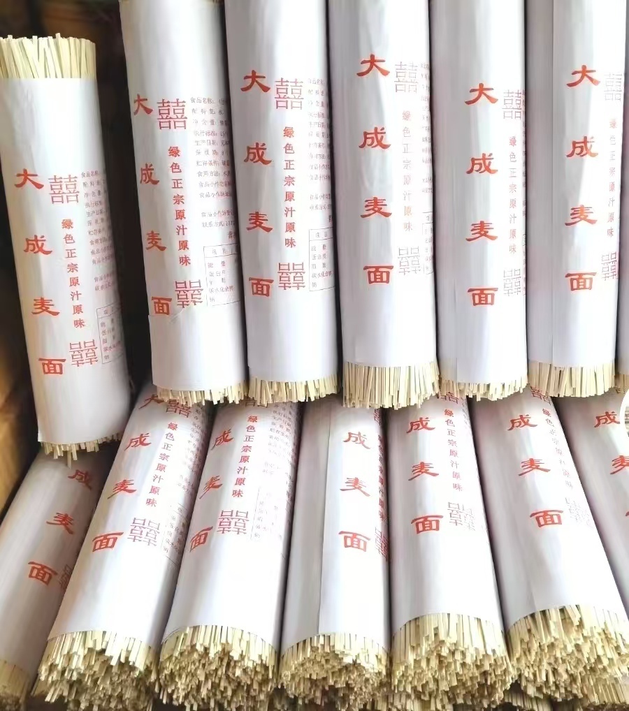 大成镇石屏村从事大成面生产销售多年的陈叔介绍了大成面制作工序——选用本地小麦,经过精细研磨,制成细腻均匀的面粉,再通过揉面、压制、晾晒等工序,最终制成面条。当地小麦的品质是影响大成面口感的重要因素之一。