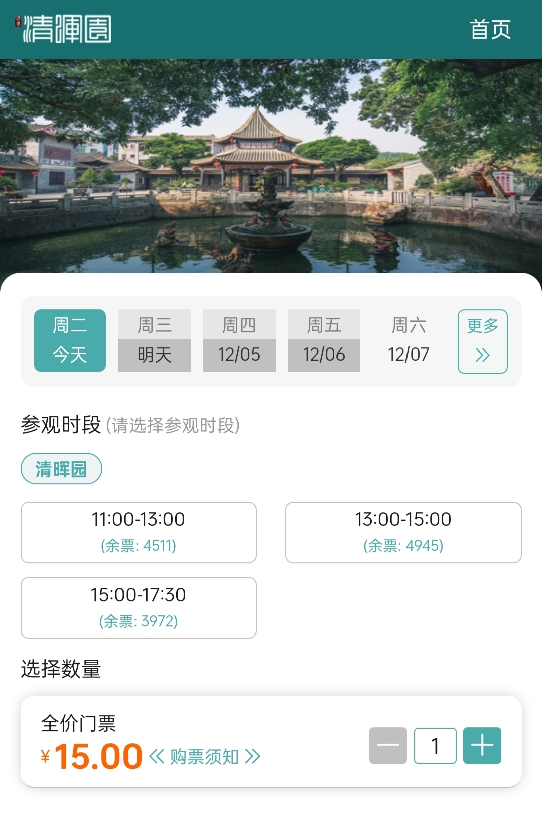 12月3日中午,记者在清晖园博物馆看到,现场有不少游客在游览、拍照。记者扫描购票平台二维码发现,12月4日至6日已经无法购票,12月7日的参观门票可正常预约。
