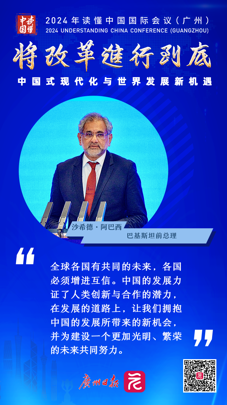 12月3日上午,2024年“读懂中国”国际会议(广州)在广州越秀国际会议中心开幕。在开幕式上,巴基斯坦前总理沙希德·阿巴西发表演讲,分享他“读懂”的中国,以及他看到中国发展所带来的全球新机遇。