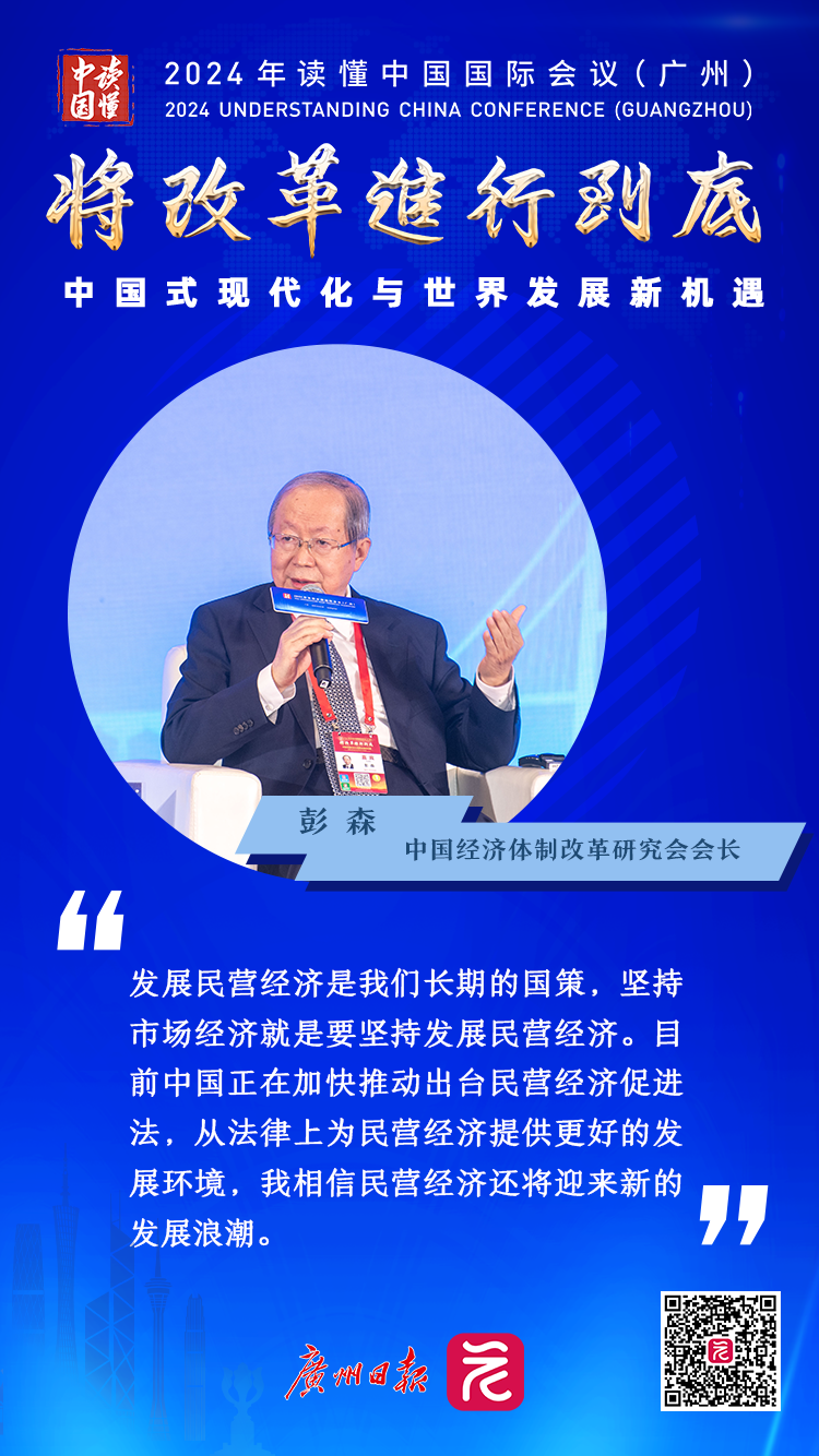“此次‘读懂中国’的主题‘将改革进行到底’很好地诠释了党的二十届三中全会精神, 同时也是再次向世界进一步宣示中国‘将改革进行到底’的决心。”12月3日,2024年“读懂中国”国际会议在广州正式开幕。在首场嘉宾对话环节中,中国经济体制改革研究会会长、国家发改委原副主任彭森表示,党的二十届三中全会作出的决定之一,就是到二〇三五年,全面建成高水平社会主义市场经济体制。这是中国改革开放40多年来,思想解放和实践探索的最新成果。