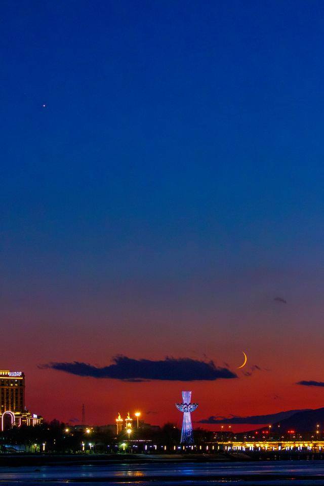 11月4日在黑龙江省牡丹江市拍摄的金星伴月。 新华社发(王宝勋摄)