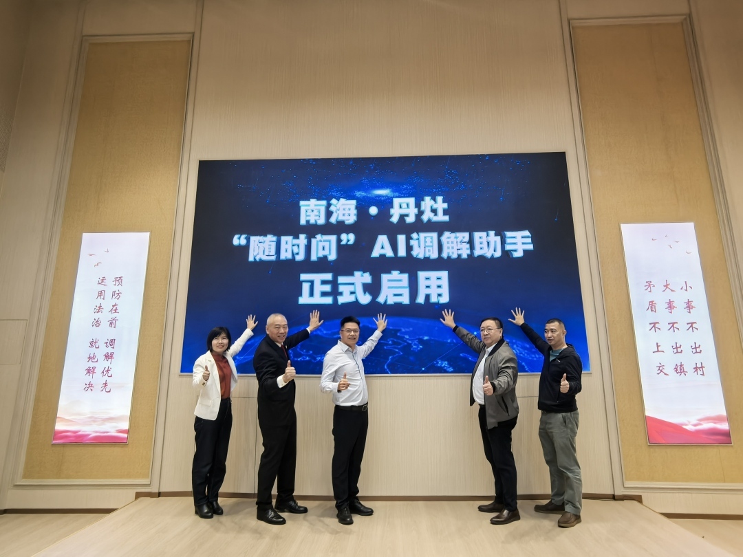 当日,由南海法院和中国司法大数据研究院共同打造的“随时问”AI调解助手投放启用仪式,在南海法院丹灶法庭举行。南海区委常委、政法委书记岑灼雄,南海区法院党组书记、院长万选才,丹灶镇党委副书记邹刚,南海区司法局党组成员、副局长关海潮,中国司法大数据研究院院长助理程慧芳等出席了活动。