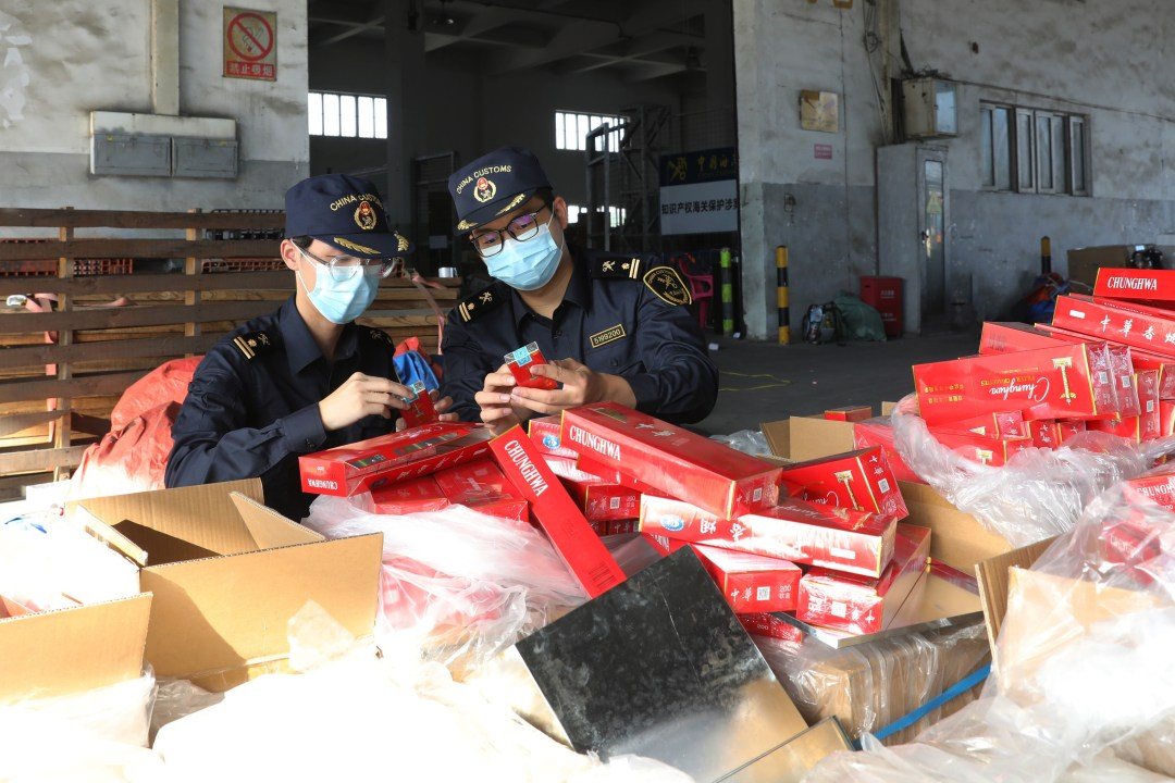广州海关所属南沙海关关员在对一票申报为“灯具、面包机等”的出口货物进行监管时,在集装箱内发现部分纸箱印有“玩具专用箱”等字样,与申报品名不符,存在伪瞒报的风险。经进一步查验,现场关员发现纸箱内装有大量未向海关申报的香烟,共计20万支。