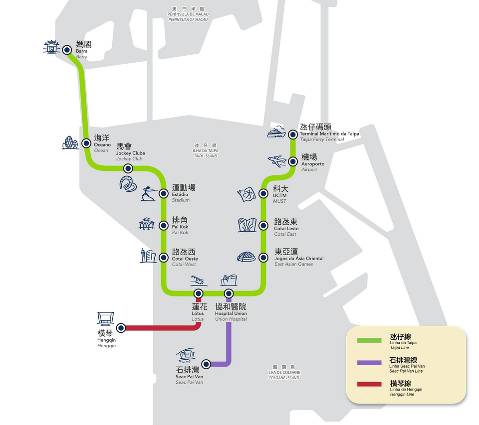 澳门轻轨“横琴线”于12月2日13时11分于“莲花站”开出首班车,正式投入运营。澳门轻轨“横琴线”全程行车时间约2分钟,班次约6分钟/班。