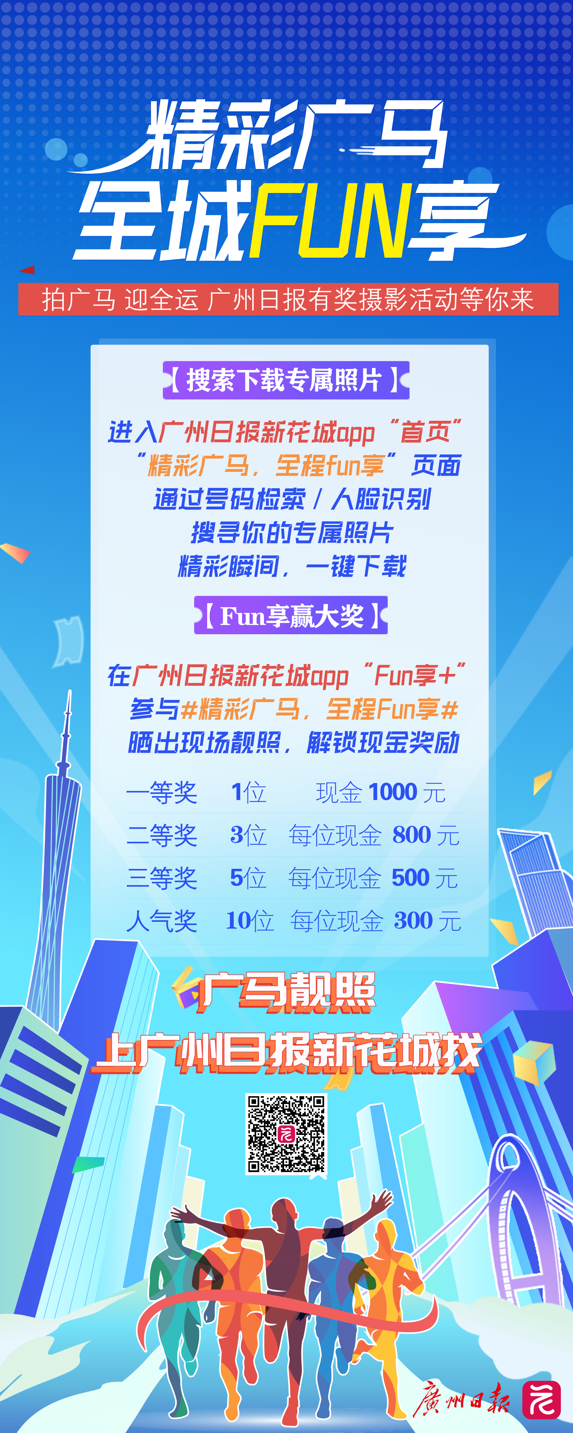 在广州日报新花城app“Fun享+”页面参与#精彩广马 全城FUN享#话题讨论(←点击进入话题),发布广马现场精彩照片,即有机会获得现金大奖。