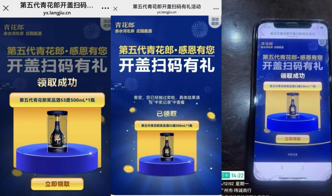12月1日,第五代青花郎“感恩有您,开盖扫码有礼”活动在全国范围内正式拉开帷幕,并迅速引发了消费者的热烈反响。活动首日,已开出红运郎、青花郎、红花郎奖品318瓶。