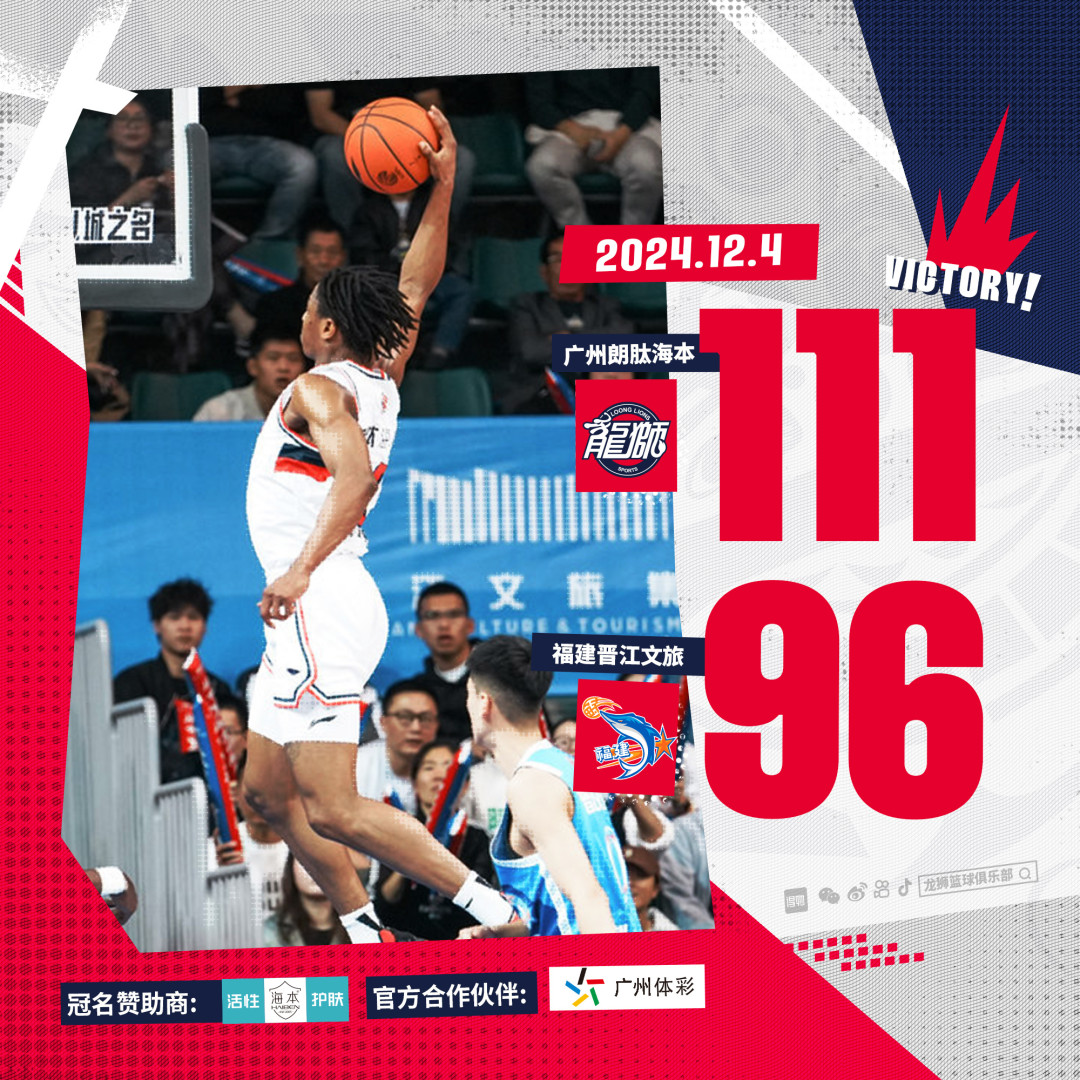在今晚进行的CBA常规赛第13轮中,广州龙狮队在客场以111比96战胜福建男篮,拿下本赛季的第5场胜利。