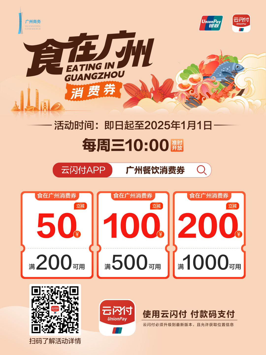 为响应广州“拼经济稳增长·提振消费”系列举措,中国银联广东分公司(以下称广东银联)积极参与“食在广州”政府餐饮消费券活动,助力提振餐饮市场并激发消费活力。此次消费券活动发放总额达1亿元,计划通过云闪付APP等多平台分批次发放,进一步促进广州消费市场回暖向好。