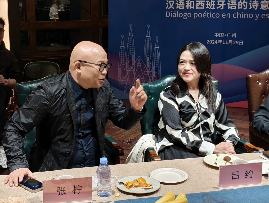 西班牙著名作家罗茜奥·奥维耶多,诗人哈维尔·佩雷斯,经济学家何塞·胡安,阿根廷作家安娜·玛利亚·舒亚,建筑学家西尔维奥·法布里坎,海外华人作家卢新华做客湾区书屋,与中国诗歌学会会长杨克,文学评论家、作家张柠,诗人、学者吕约和作家蒲荔子、陈崇正、冯娜、孔鑫雨等中方嘉宾围绕“中西文学交流”“中西文明互鉴”等话题进行了诗意的探讨。对话由作家赵彦和诗人欧亚主持。