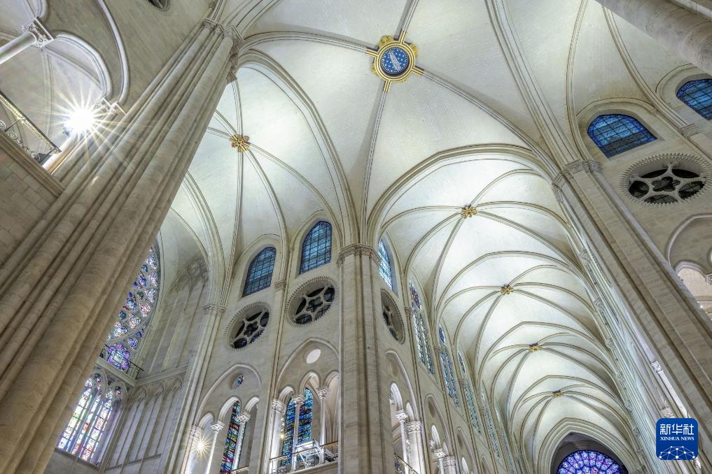 这是11月30日拍摄的法国巴黎圣母院内部。 新华社发(朱利奥·皮亚蒂摄)