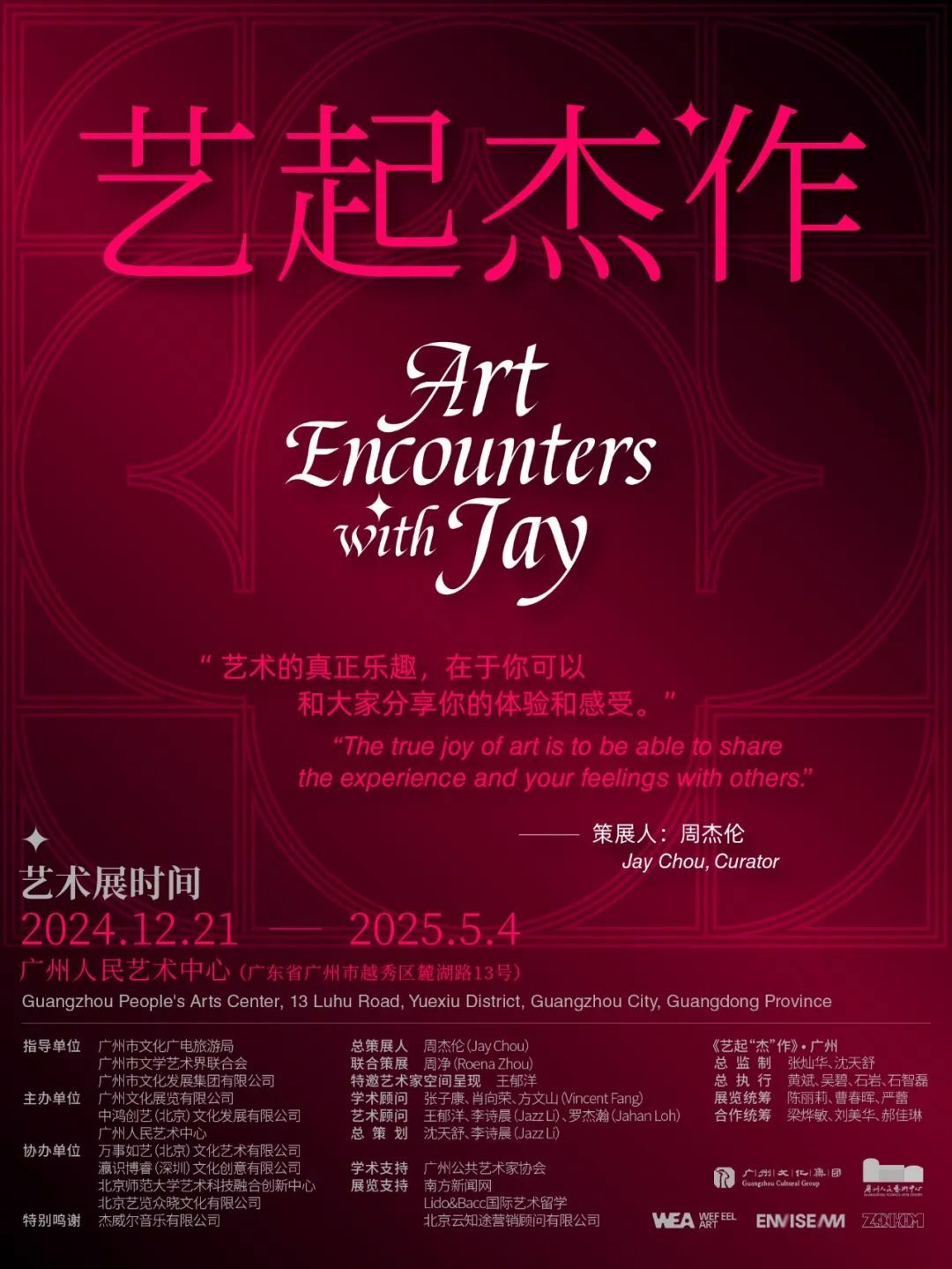 由广州市文化广电旅游局、广州市文学艺术界联合会、广州市文化发展集团有限公司指导,广州文化集团旗下广州文化展览有限公司、中鸿创艺(北京)文化发展有限公司、广州人民艺术中心联合主办,周杰伦先生担任总策展人的「艺起“杰”作」展览,将于 12 月 21 日在广州人民艺术中心盛大开启。