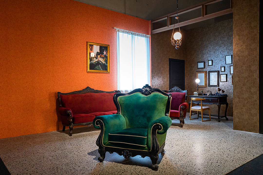 在「艺起“杰”作」广州站的展览现场,这张专辑的封面场景被精心复刻,仿佛穿越时空,房间中那一抹复古绿色沙发,如同中世纪油画中走出的优雅,宁静而神秘。