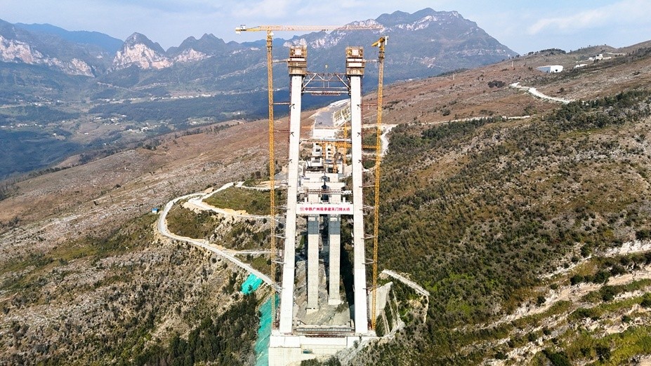 12月6日,由驻穗央企中铁广州工程局承建的世界最高双向六车道钢桁梁悬索桥——贵州安盘高速天门特大桥安顺岸11号主塔顺利封顶。继8月盘州岸主塔封顶后,大桥两岸主塔全部封顶,标志着大桥建设取得突破性进展,即将进入上横梁施工、主索鞍安装、猫道架设等上部结构施工阶段。