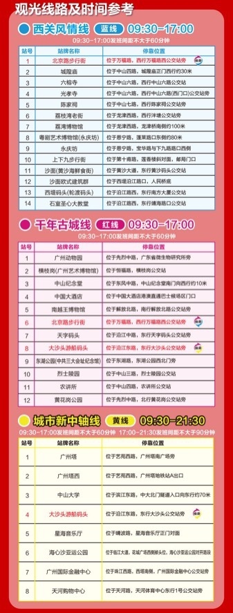 享受权益:持《广州观光巴士纪念车票》,享受“千年古城线、西关风情线、城市新中轴线”多次换乘。