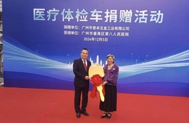 12月5日上午,广州市曾本五金工业有限公司(以下简称曾本公司)向番禺区第八人民医院(以下简称番禺八院)捐赠医疗体检车的捐赠仪式在医院门诊楼西广场举行。