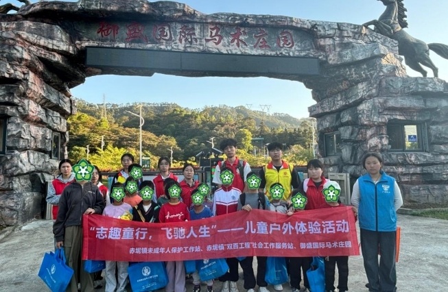 为增进困境儿童的人际交流,增强沟通能力和表达能力,树立正确的价值观,日前,广州市花都区赤坭镇“双百工程”社会工作站联合赤坭镇未成年人保护工作站、御盛国际马术庄园、广东培正学院会计学院团委志愿实践部联合开展“志趣童行,飞驰人生”—儿童户外体验活动。