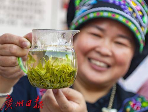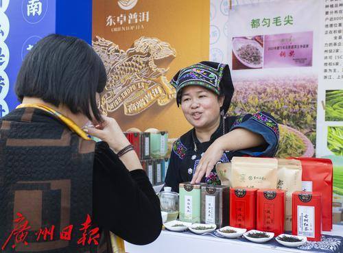 来自贵州黔南州的茶商展示都匀毛尖茶。