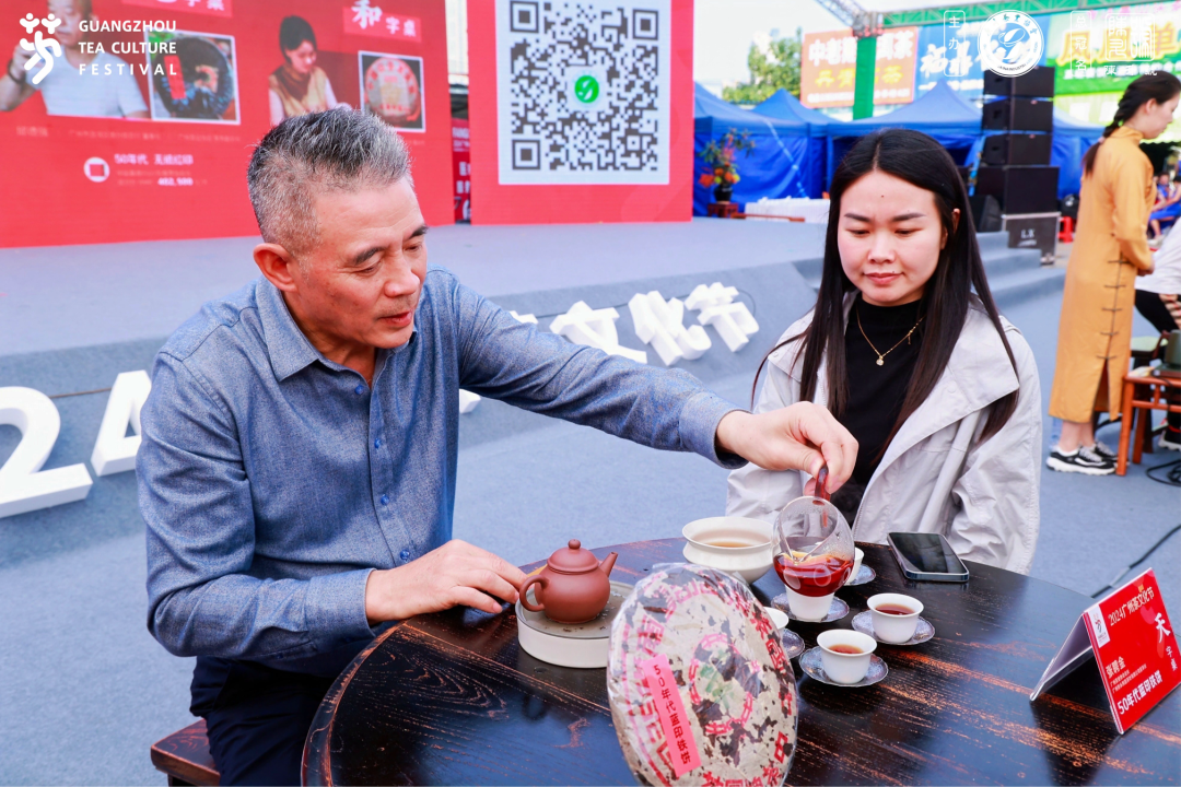 作为2024广州茶文化节的重头戏,12月7日上午10时,百席大茶荟正式开席。大茶荟设有108个茶席,席主为芳村资深茶人及知名茶企、茶商主理人。他们分别拿出许多茶友平时听过但未必见过,见过但未必喝过的“店宝”级珍稀老茶,如50年代大红印、80年代8582、百年三票六安、蓝印铁饼、50年代无纸红印、白沙溪58茯砖、七三青、母树八仙等,当场开撬,现场冲泡,免费供游客、茶友品鉴。这场世纪罕见的大茶荟,是老茶的“博物馆”,更是老茶的体验场。除了老茶之外,现场六大茶类应有尽有,还设置了盲品环节等你来挑战。