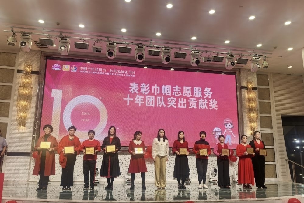 为荣获巾帼志愿服务十年团队突出贡献奖代表颁奖