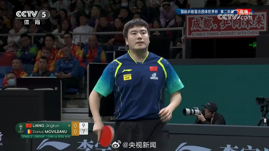 12月7日,2024年国际乒联混合团体世界杯第二阶段循环赛在四川成都继续进行。国乒一日双赛,继下午战胜法国队后,由林诗栋/蒯曼(混双)、王曼昱(女单)、梁靖崑(男单)出战的中国队,刚刚以8-0战胜罗马尼亚队,取得开赛以来九连胜并晋级四强。