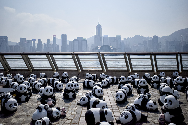△12月7日,2500只大熊猫雕塑亮相香港尖沙咀的星光大道