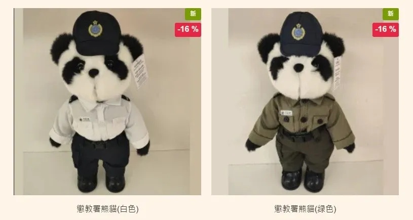 香港特区政府礼品店近期推出大熊猫周边,穿白、绿两色制服的惩教署大熊猫公仔,造型各异的大熊猫冰箱贴,以及游泳、乒乓球等各项体育运动主题的大熊猫胸针均有出售。