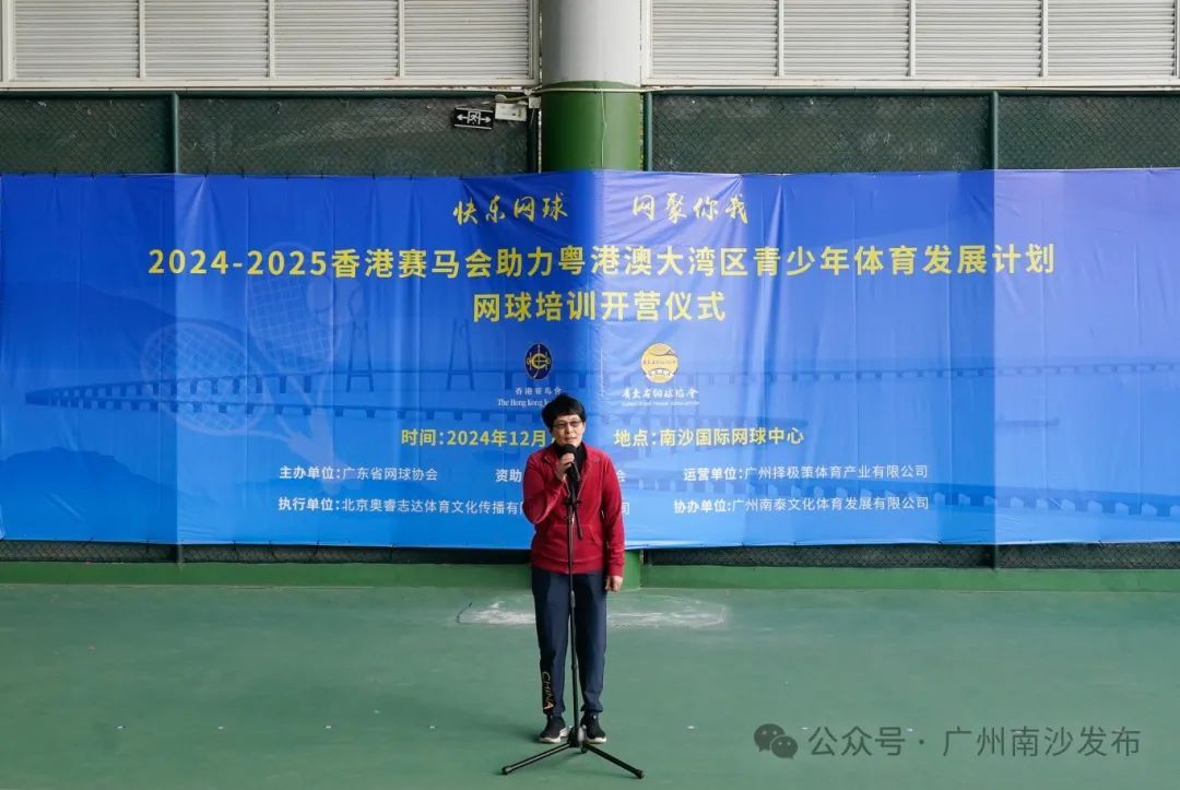 12月7日,2024—2025年香港赛马会助力粤港澳大湾区青少年体育发展计划网球培训首发站——广州南沙站,在广州南沙国际网球中心正式开营!