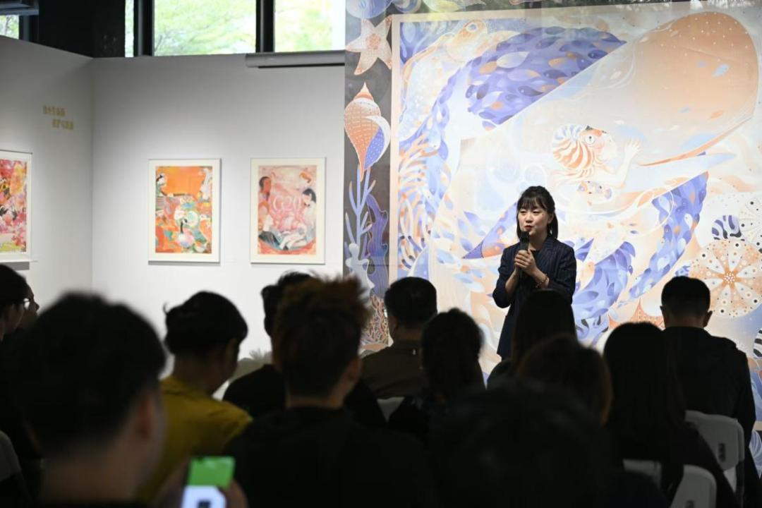 插图主笔李旻与艺术爱好者、观众朋友们一同见证展览亲切互动,并分享了她多年来为中国日报国际版创作新闻插画的思考与理解。