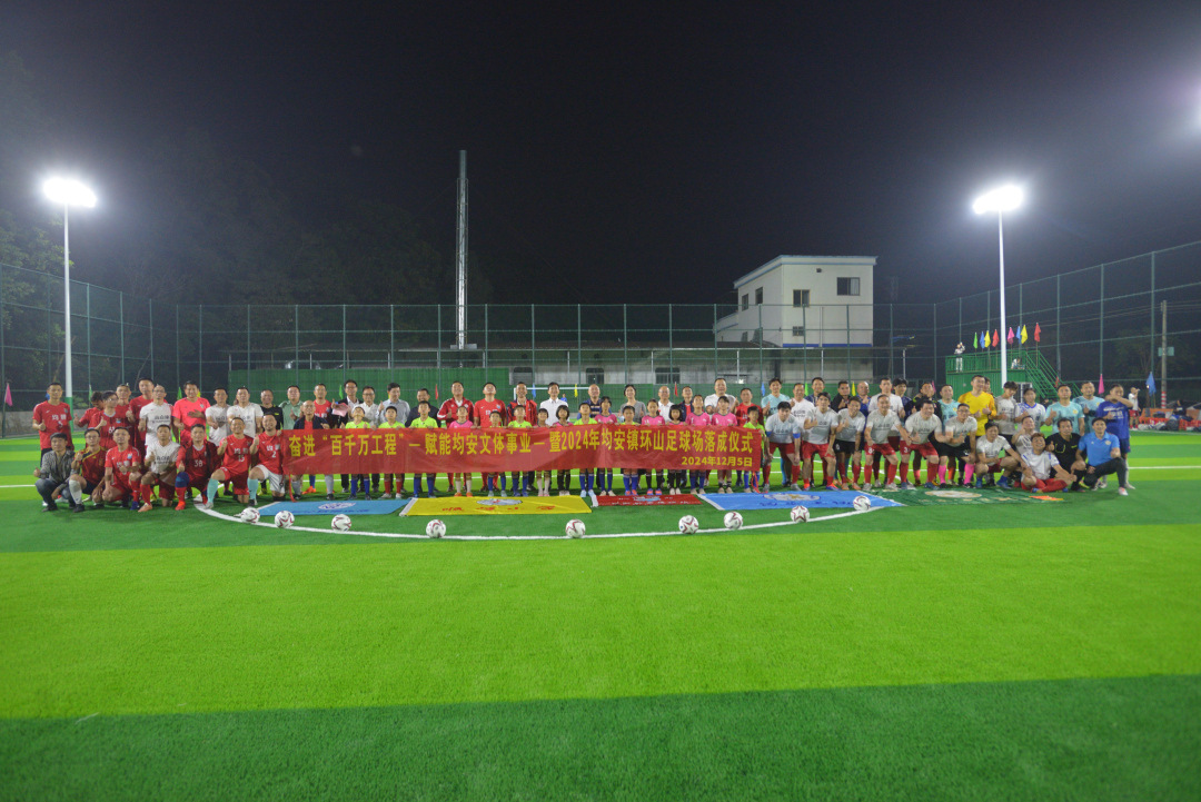 藏不住了!12月5日晚,四盏亮光划破夜空,位于佛山顺德区均安镇十里环山带(南浦段)的足球场灯光明亮、热闹非凡。来自政府机关、足协代表、学生代表以及众多足球运动爱好者参与珠三角邀请赛,共同见证均安以及顺德首个环山足球场建成启用。
