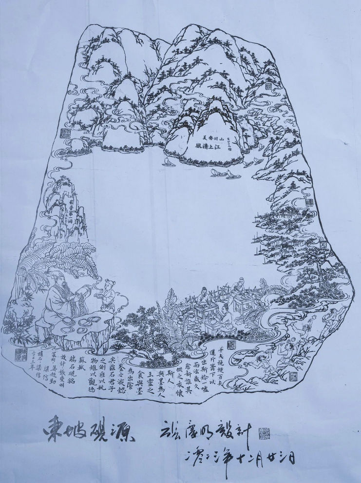 据介绍,水口社区素有“端砚源村”之称,孕育了浓厚的制砚氛围,形成了以家庭作坊为单位的“端砚一条街”,金渡砚艺创意园正坐落于此。为进一步弘扬端砚文化,水口社区将建造一座凉亭展示“东坡砚源”,并将早前当地居民在宋隆河边发现的清代石碑也放置其中。