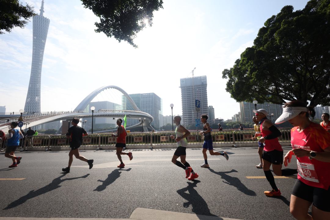 穿过人民桥,跑者们就跑了接近33公里,完成了珠江河南岸的赛道。