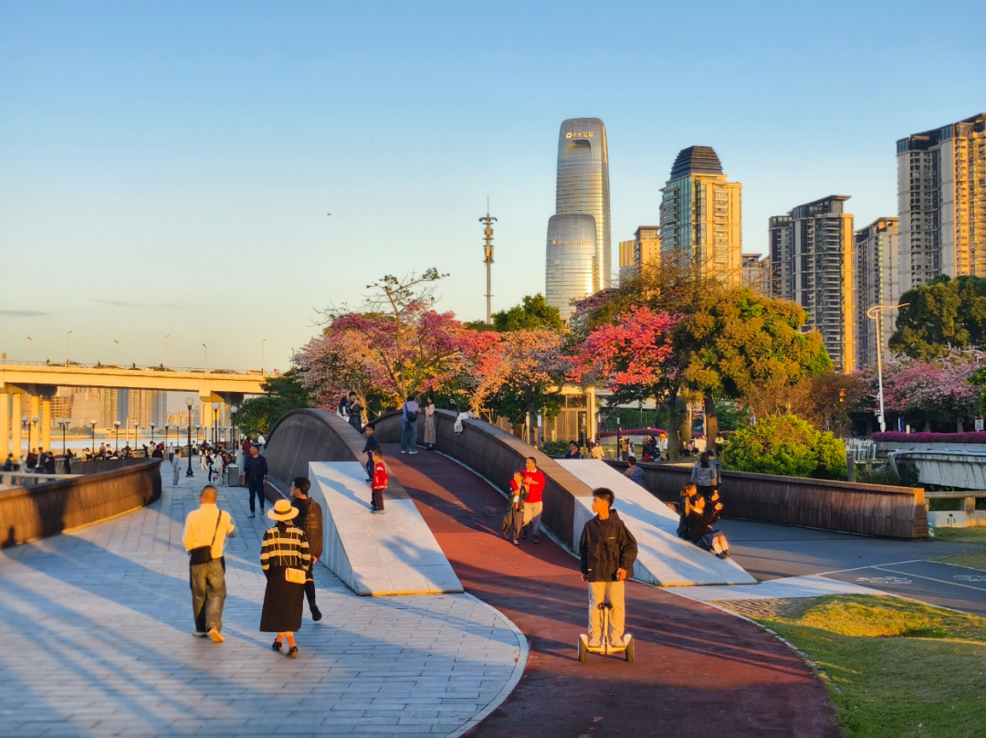 阅江中路异木棉景色美如画。图/广州日报新花城记者:骆昌威