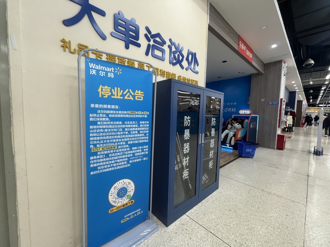 记者8日走访了该家沃尔玛超市。得益于其所在的区位,该沃尔玛超市客流量尚可。记者还在超市门口入口见到了这一停业公告。该公告称,沃尔玛顺德东乐路店将于2025年1月6日起停止营业,由此给顾客和周边社区带来的不便深表歉意。公告还提醒,该店停业后,佛山还设有6家沃尔玛门店,顾客可以到店购物以及在沃尔玛小程序下单。而沃尔玛礼品卡也可继续在全国其他的沃尔玛商场使用。
