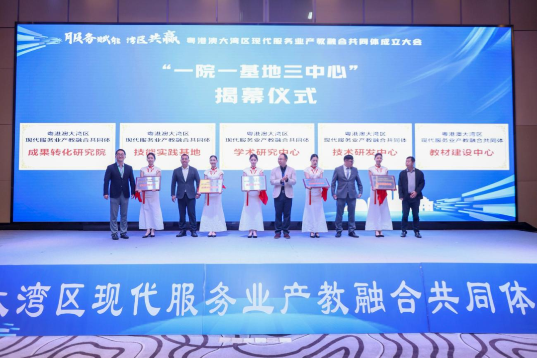 大会还举行共同体成立仪式,发布粤港澳大湾区现代服务业产教融合共同体章程,开展理事长单位、副理事长单位、常务理事单位和理事单位授牌仪式、共同体“一院一基地三中心”揭幕仪式以及校企合作(签约)仪式。