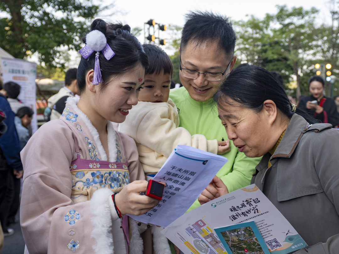 在集市现场,医护人员变身“摊主”,当场展示火龙罐、刮痧、温通刮痧、雷火灸等中医药传统特色疗法;广州市三级名中医工作室的专家在这里把脉开方,用精湛的医术和贴心的服务为群众提供健康咨询;游戏区有艾草锤、中药香囊制作,辨识中药材,穴位科普,猜灯谜等游戏项目,还有身着汉服的NPC(游戏主持)穿行于人潮中,与市民们玩互动游戏送礼物。
