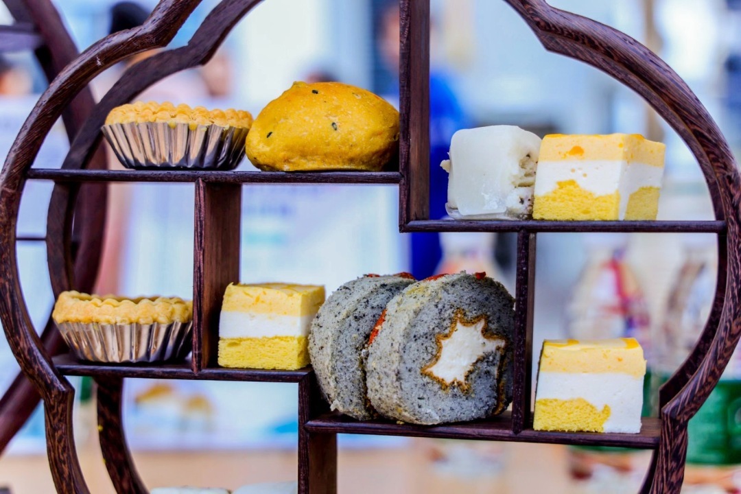 此外,还有“中医院配方”的陈皮红豆松化鸡蛋挞、枸杞黑芝麻蛋卷、养生红枣核桃面包、脾胃薏米芡实糕、玄冬暖阳茶、润色养颜茶等药膳点心、节气茶饮可以现场品尝,主打一个“好吃、好玩又养生”。整个下午,集市人潮如织,热闹非常。