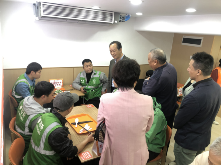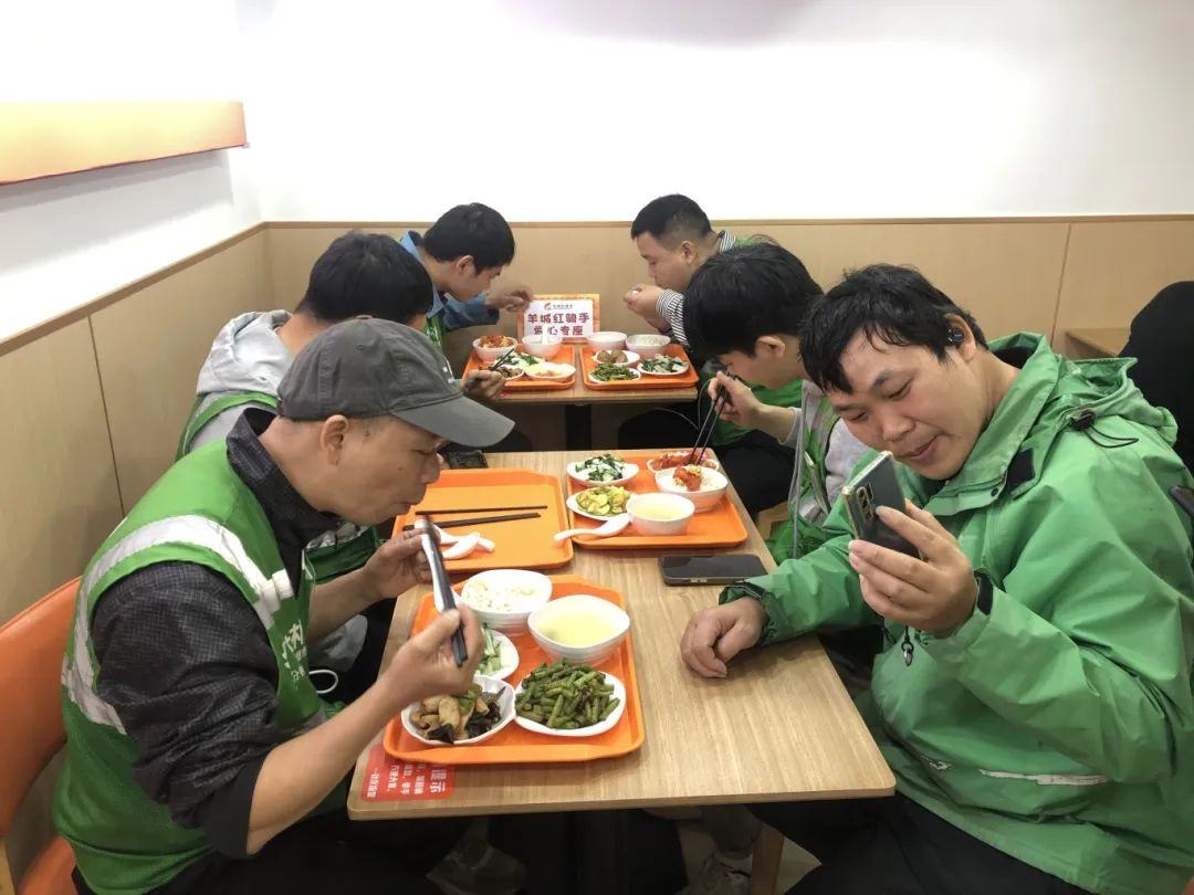 颇受领导嘉宾重视的“关爱新业态从业者”,对大塘而言其实是一项“早就在路上”的熟悉课题。在社区饭堂,便有十余名身穿外卖骑手服装的小哥聚在一起用餐,他们都是社区饭堂邀请而来的“试餐员”。
